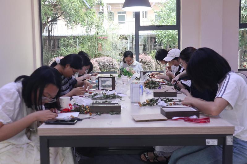 在互动环节中,同学们互相展示自己的相框作品并交流其中的要领和心得。何同学表示:“通过这次活动,我不仅学会了干花相框的制作,还能通过设计相框样式向老师表达自己独特的想法。这份礼物虽小,却是我最真诚的心意。”