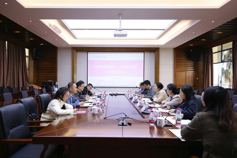 11月13日,广西民族师范学院党委常委、副校长韦茂斌一行5人到我校调研交流学生工作。交流座谈会在雁山校区起文楼第四会议室举行,我校校党委常委、副校长黄晓昀,学生工作部(处)主要负责人,相关学院代表参加座谈。