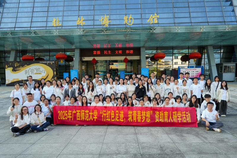 为深化资助育人成效,将经济帮扶与思想引领、实践成长深度融合,11月14日,由我学生工作部(处)主办,政治与公共管理学院、化学与药学学院承办的“行红色足迹,筑青春梦想”资助育人主题研学活动顺利开展。活动组织我校家庭经济困难本科学生代表100余人赴桂林市抗战文化名人博物馆、一院两馆参观研学,让学生在行走中触摸红色根脉、感受育人温度。