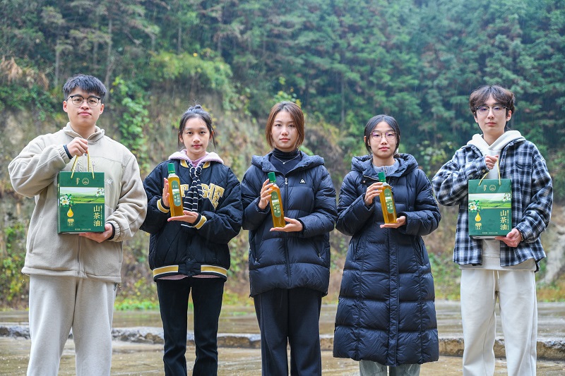 “山茶油是当地的特色农副产品,标准化包装能提升产品附加值,帮助村民卖出更好价钱。”我校我校派驻坪水底村第一书记介绍。经济管理学院张同学说:“从田间的油茶果到货架上的礼盒,每一道工序都藏着乡村振兴的密码,我们的劳动能为农产品出山添份力,特别有意义。”