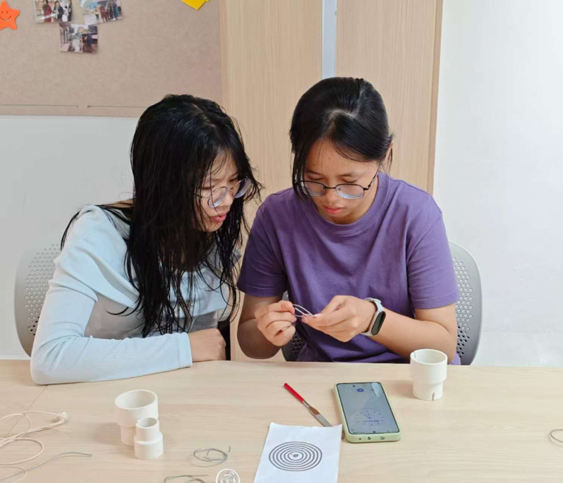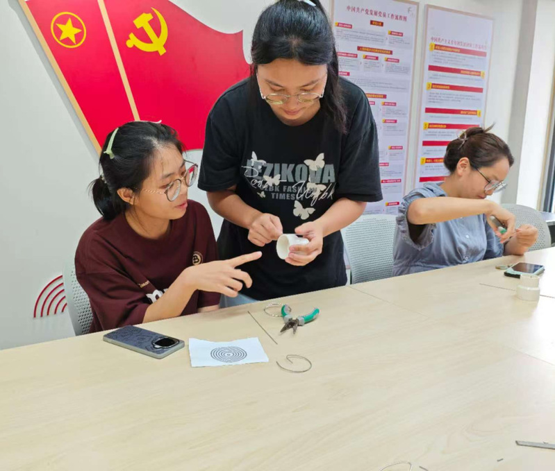互动环节中,同学们纷纷提出“重心总偏怎么办”“怎么打磨尖端更好”的问题。主讲人现场演示调试技巧,手把手指导调整铁丝重心。
