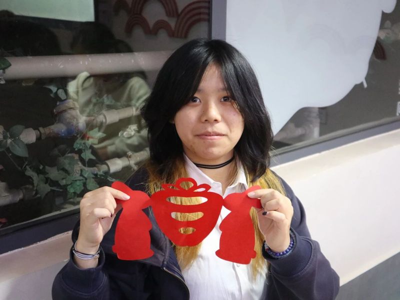 同学展示剪纸作品