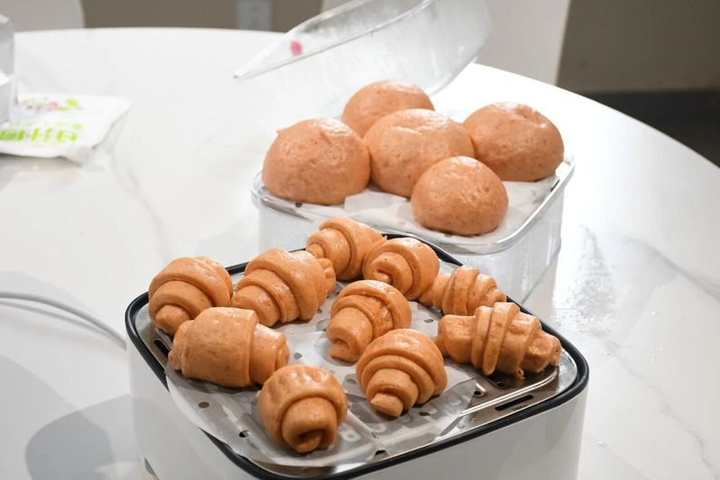 在动手实践环节,同学们被分成若干小组,在主讲人和志愿者的指导下,有条不紊地投入到和馅、包饺子、制作馒头的实践中。桌面上,面粉、饺子皮、各色馅料整齐摆放,同学们分工协作,有的专注擀皮,手法娴熟;有的精心包制,创意十足,元宝形、月牙形的饺子花样百出。遇到操作难题时,大家相互请教、耐心解答,志愿者们穿梭其间,及时提供帮助,共享厨房充满了欢声笑语,俨然一个温暖的大家庭。