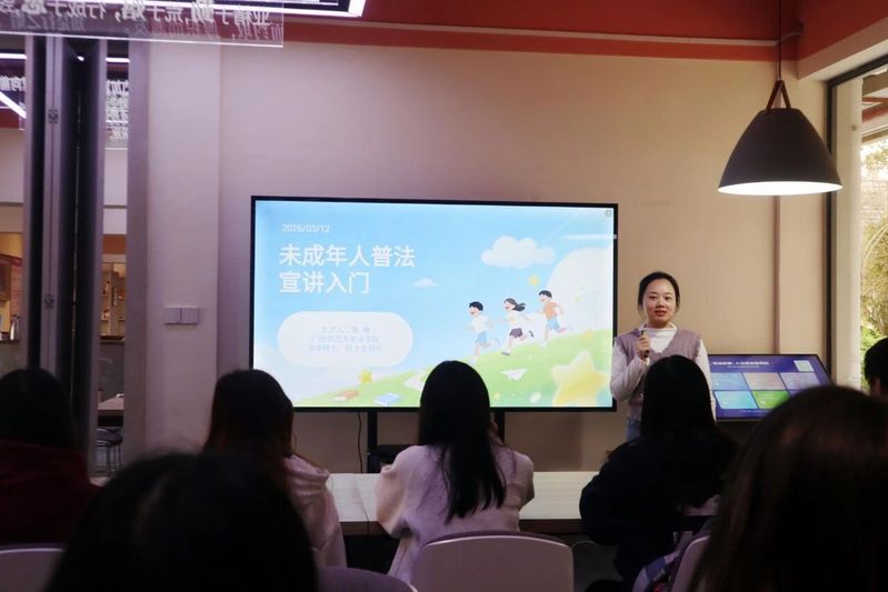 为加强法治教育,提升普法服务能力,近日,法学院/律师学院“法治沙龙”团队在恬园学生社区学生之家开展第七十四期“社区素质课堂”主题分享。活动邀请法学院/律师学院莫琳老师主讲,她围绕“未成年人普法宣讲入门”主题,通过案例讲解与技巧传授,引导同学们掌握有温度的普法方法。