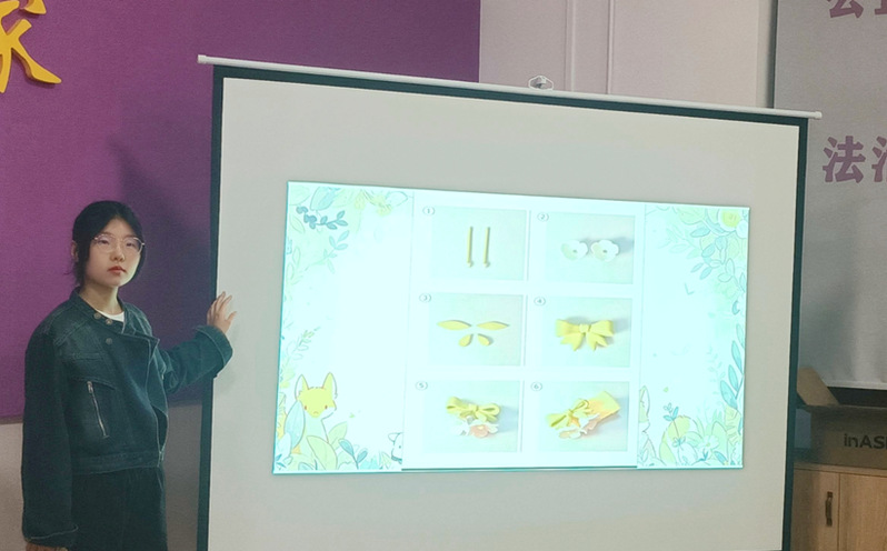 主讲人以生动的语言阐释了“美育浸润行动”对青年全面发展的重要意义,结合本次粘土发夹手工体验活动,从材料准备、造型设计到色彩搭配、细节装饰的完整流程进行介绍。同时,针对创作过程中的关键技巧与注意事项,主讲人逐一进行示范,为大家顺利完成作品打下了坚实基础。