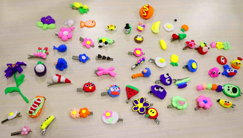 活动现场,同学们满怀热忱地投入创作,以色彩丰富的超轻粘土为材料,通过揉、捏、搓、压等手法,将天马行空的创意转化为一件件精巧别致的发夹作品。大家在主讲人的指导下,从基础造型到细节装饰,一步步打磨作品,现场氛围轻松而专注。在“作品分享与互评”环节,同学们纷纷展示自己的创意成果,交流创作思路与心得,不少作品融合了校园文化与个人风格,展现出独特的审美意趣。