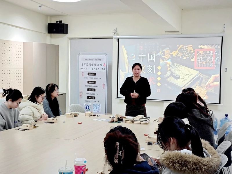 为深入推进美育浸润行动,引导同学们在体验中感受中华优秀传统文化的独特魅力,3月19日下午,怡园学生社区在心理疗愈室开展第七十八期“社区素质课堂”主题分享活动。本次活动特邀设计学院王丽媛老师担任主讲人,她带领同学们开启了一场别开生面的篆刻艺术初体验。