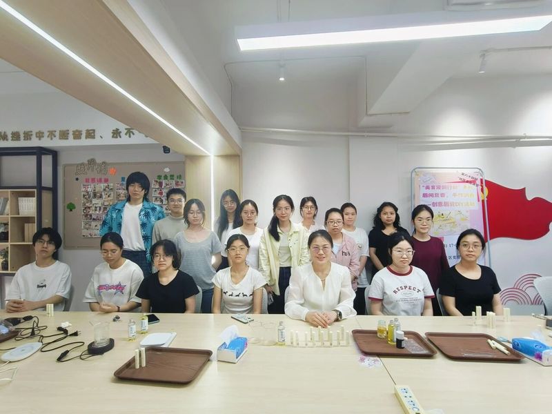 进入动手实践环节,主讲人逐一指导,针对同学们在原料混合比例、加热温度控制、灌装脱模等环节中遇到的问题,耐心解答并亲自示范纠正。大家在搅拌、注模、等待凝固的过程中,不仅沉浸于手作的专注与乐趣,更收获了一支支散发咖啡香气的专属润唇膏。“作为咖啡重度爱好者,能参加咖啡豆味唇膏DIY实在太惊喜了!活动把美育和生活技能结合得特别自然,既学会了实用手艺,又感受到了创意带来的快乐。”来自职业技术师范学院2025级的王同学感慨地说。“以前觉得唇膏做起来很简单,亲自上手才发现每个环节都有门道。尤其是咖啡豆香和基底油脂怎么融合,邓老师手把手教我调整,最后做出来的唇膏特别有氛围感!”来自化学与药学学院2024级的李同学分享道。