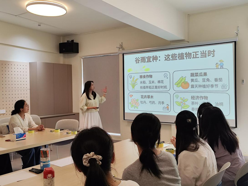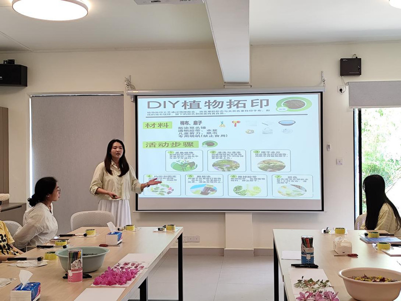 为坚定文化自信,加强中华优秀传统文化教育,近日,怡园学生社区在心理疗愈室开展了“社区素质课堂”(第八十六期)主题分享。本次活动邀请外国语学院2023级硕士研究生黄雅晴担任主讲人,同学们踊跃参与,大家在指尖创作中感受传统文化与自然美学的独特魅力。活动中,黄雅晴师姐向大家细致介绍谷雨节气的由来、传统习俗与文化内涵,阐释“雨生百谷”的农耕智慧与人文底蕴。随后,她清晰讲解植物素拓手绘的材料用法、操作步骤与创作要点,通过示范让同学们快速掌握拓印技巧。