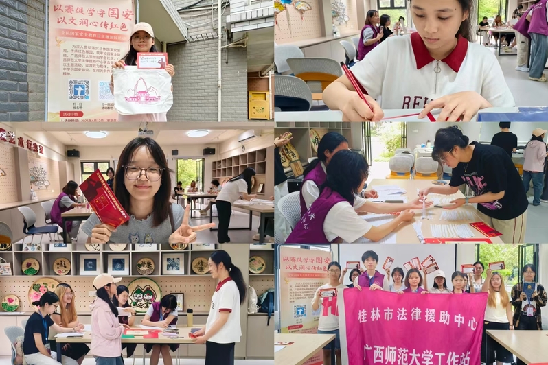 在专题学习的基础上,怡园学生社区联合广西师范大学法律援助中心创新教育形式,开展“以赛促学守国安,以文润心传红色”主题游园活动。活动围绕军事、社会、文化、网络四大安全领域,设置“连字成句话国安”“纸飞机投投乐”“红色文化薪火相传猜猜”“安全行为对对碰”等趣味环节,同学们在游戏闯关、互动比拼中深化安全认知,将法治知识转化为行动自觉,现场氛围热烈有序。