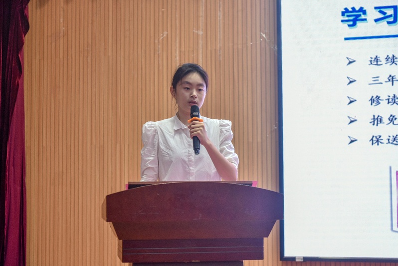 报告会上,侯玉可同学围绕《不忘初心勇于担当,精益求精追求卓越》讲述了她的励志成长故事。她鼓励广大同学打牢专业基础,专注学科竞赛,拓展实践能力,重视全面发展,奉献个人能力。她同学表示,感谢国家资助政策给予的支持和帮助,感谢学校和学院的悉心培养,未来她将不懈努力为建设数据强国贡献自己的力量。
