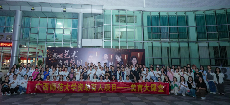 10月16日晚,由广西师范大学音乐学院主办、校党委宣传部、学工部(处)协办的“高雅艺术·文明艺术”:独秀本科生综合素质提升计划—美育大课堂系列活动之中外经典声乐作品音乐会在雁山校区音乐学院三楼演艺厅顺利开展。学校党委宣传部副部长杨真宝、音乐学院副院长吴浩琼出席,遴选各学院(部)家庭经济困难本科学生代表合计550余人参加了本次活动。