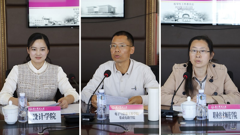 11月12日,校学生工作委员会召开会议传达学习习近平总书记的重要讲话精神。设计学院、电子与信息工程学院/集成电路学院、职业技术师范学院党委副书记分别领学。校党委副书记、校学生工作委员会常务副主任旷永青主持会议。