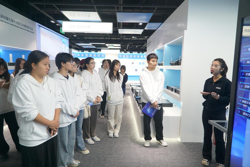 研学团队来到英特尔大湾区科创中心。在这里,同学们不仅对人工智能、芯片应用开发、边缘计算等尖端技术有了深入了解,还亲身体验了最新的科技应用。从历史墙到产品展示区再到科技互动处,每一个环节都让同学们深刻感受到科技创新为人类生活进步带来的便利。本次走访不仅拓宽了同学们的视野,也让大家更加深刻地认识到了科技兴国的重要性。
