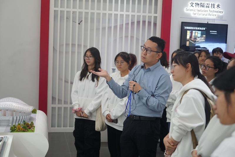 广州大学是国家“111计划”建设高校,是广东省、广州市高水平大学重点建设高校。在校史馆内,同学们了解到广州大学的创建沿革、历史贡献和发展成就,并深刻领悟“博学笃行,与时俱进”这一校训精神的丰富内涵。随后,师生们穿越“千米红廊”来到广州大学工程抗震研究中心参观体验。广州大学工程抗震研究中心是我国最早开始隔减震工程技术研究的科研机构之一,也是国内唯一专门研究隔减震工程技术的实验室,多年来在抗震防灾领域取得过显著成果。在振控科学馆内,老师为同学们详细讲解了隧道减隔震、三维隔震技术、文物保护隔震等前沿知识。在科普互动区,同学们还通过自主操作实验设备模拟地震效果,亲身感受到了抗震技术的重要作用。