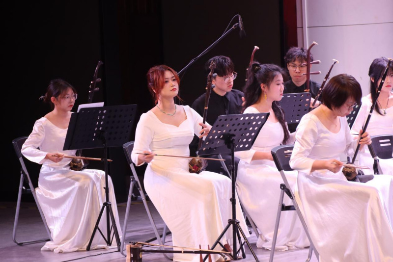 琴瑟和鸣,管弦齐奏。此次音乐会由广西师范大学音乐学院杨永强副教授、音乐学院民族乐团共同演绎,他们为师生们带来《龙腾虎跃》《青花瓷》《瑶族舞曲》《我的祖国》等八首民族音乐作品,展现我校美育高品质成果,让师生在欣赏艺术和感受文化中增强民族自豪感与文化自信心。