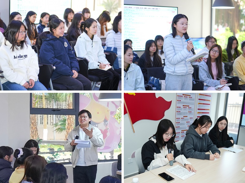 分享现场气氛热烈,同学们结合阅读体悟与成长经历踊跃发言,围绕“面对人生困境如何实现自我突围”“新时代青年如何践行性别平等理念”等话题畅谈心声,既有对成长困惑的坦诚交流,也有对新时代女性力量的全新认知。